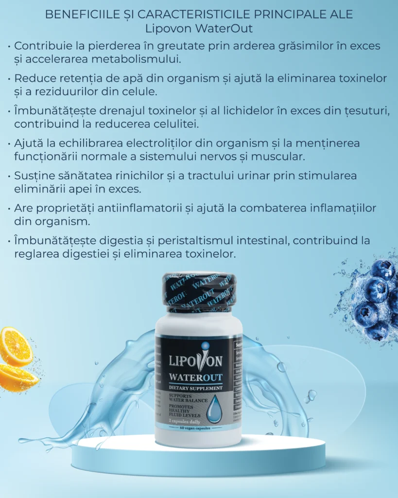 Lipovon WaterOut se integrează ușor în orice rutină zilnică și funcționează cel mai bine atunci când este asociat cu o hidratare adecvată și un stil de viață echilibrat.