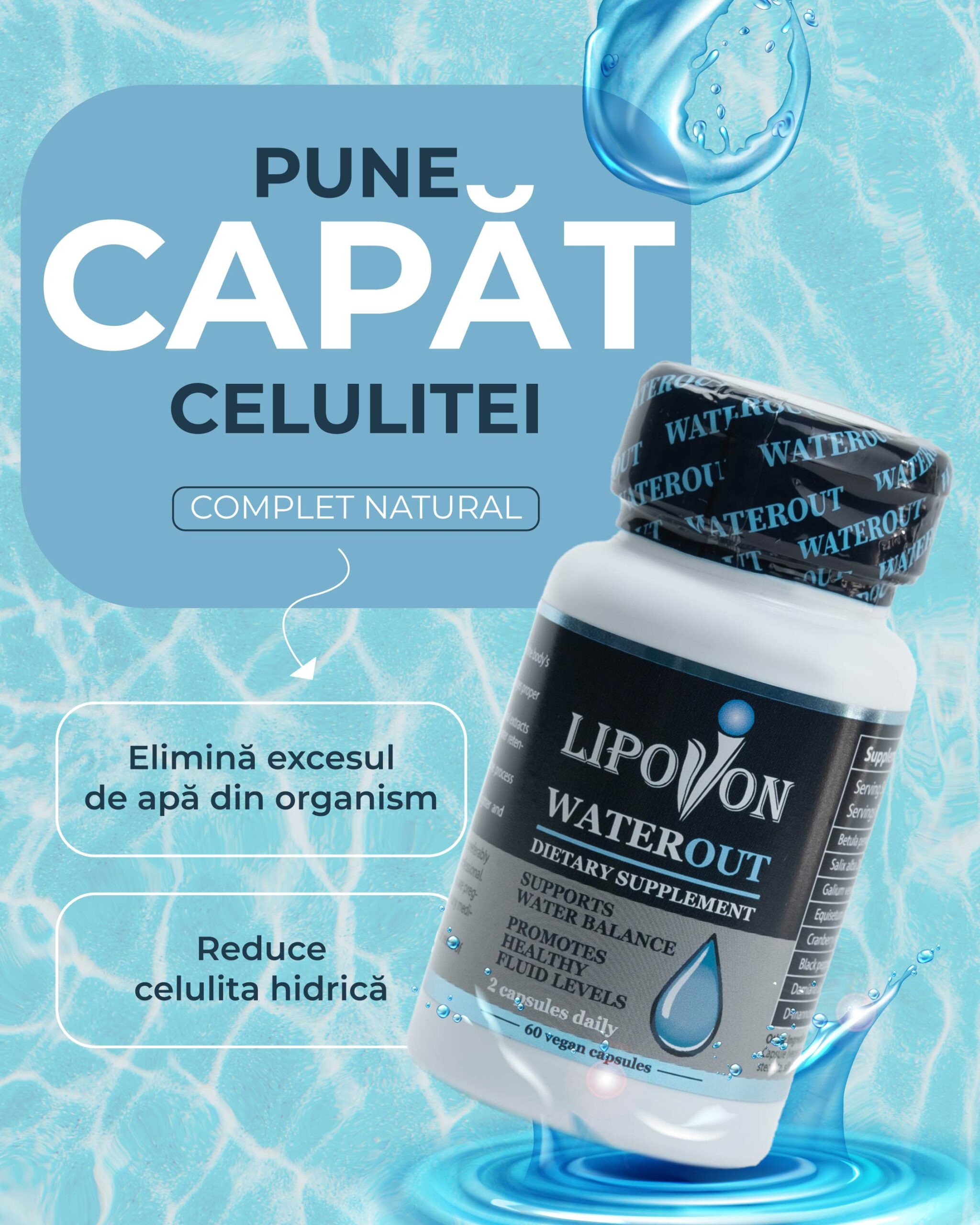 Sprijină-ți călătoria spre un stil de viață sănătos cu Lipovon WaterOut – un supliment creat cu grijă pentru a elimina excesul de apă din organism, a reduce balonarea și a susține detoxifierea naturală. Formula sa puternică conține ingrediente naturale cu proprietăți diuretice, menite să mențină echilibrul fluidelor și să te facă să te simți mai ușoară, energizată și revigorată în fiecare zi.